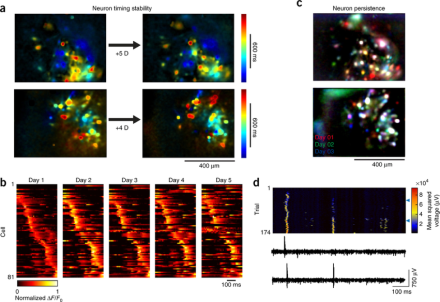 Whole brain mapping of a sensorimotor response in the zebrafish… Novel optogenetics combination to control select cells in deep brain tissue at high resolution… Instability of neurons during stable song behavior in songbirds…